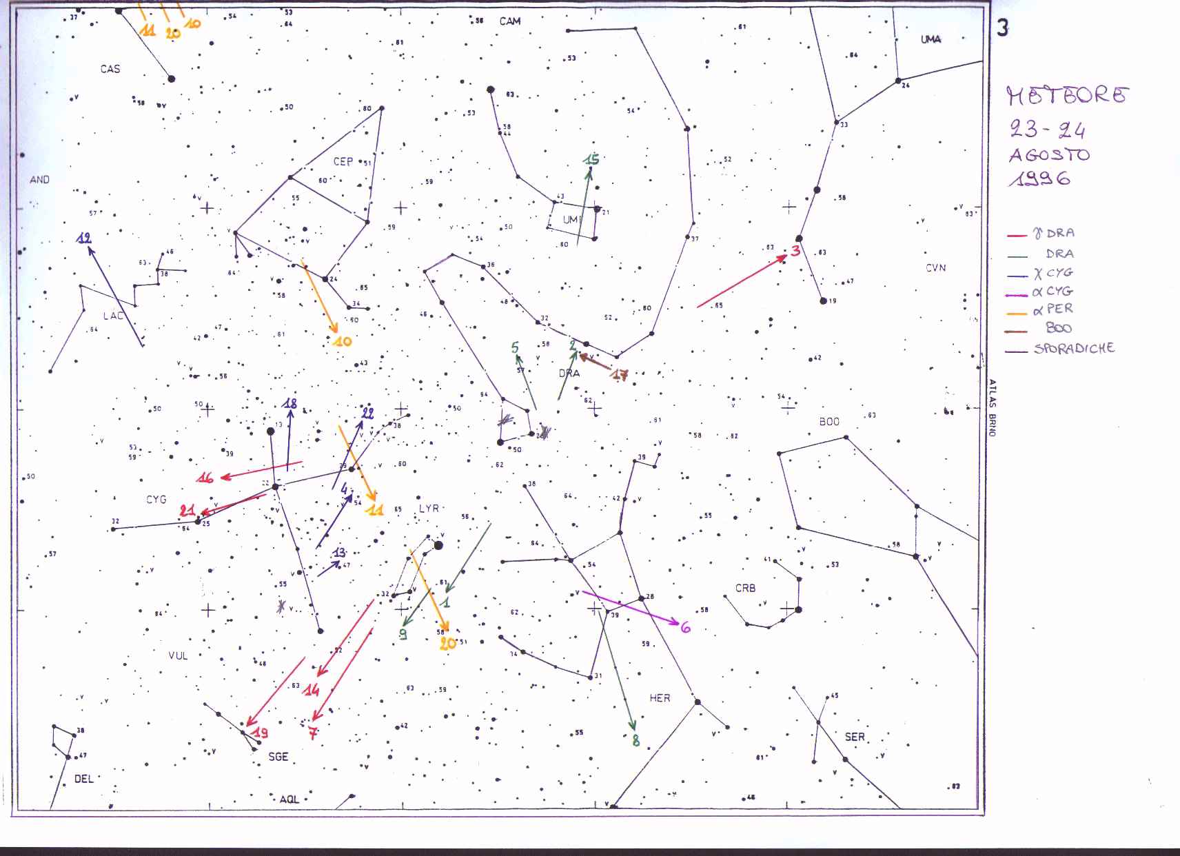 | 19 | 23.08.1996 | 22.00 | GAMMA DRA | 3 | V | CYGNUS | 1.5 SEC.; SCIA LUNGA 12° |