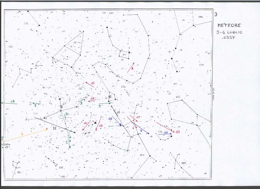 | 19 | 06.07.1997 | 00.40.56 | GAMMA DRACONIDE | 0.5 | VV | CORONA BOREALIS | 0.5 SEC.; GIALLO |