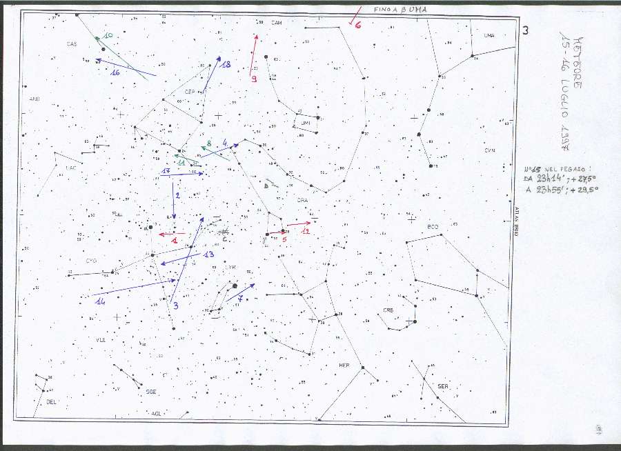 | 14 | 15.07.1997 | 22.42.38 | PEGASIDE | -0.5 | L | CYGNUS | 3 SEC.; BIANCO/ GIALLO; SCIA 2.5 SEC. LUNGA 20° |