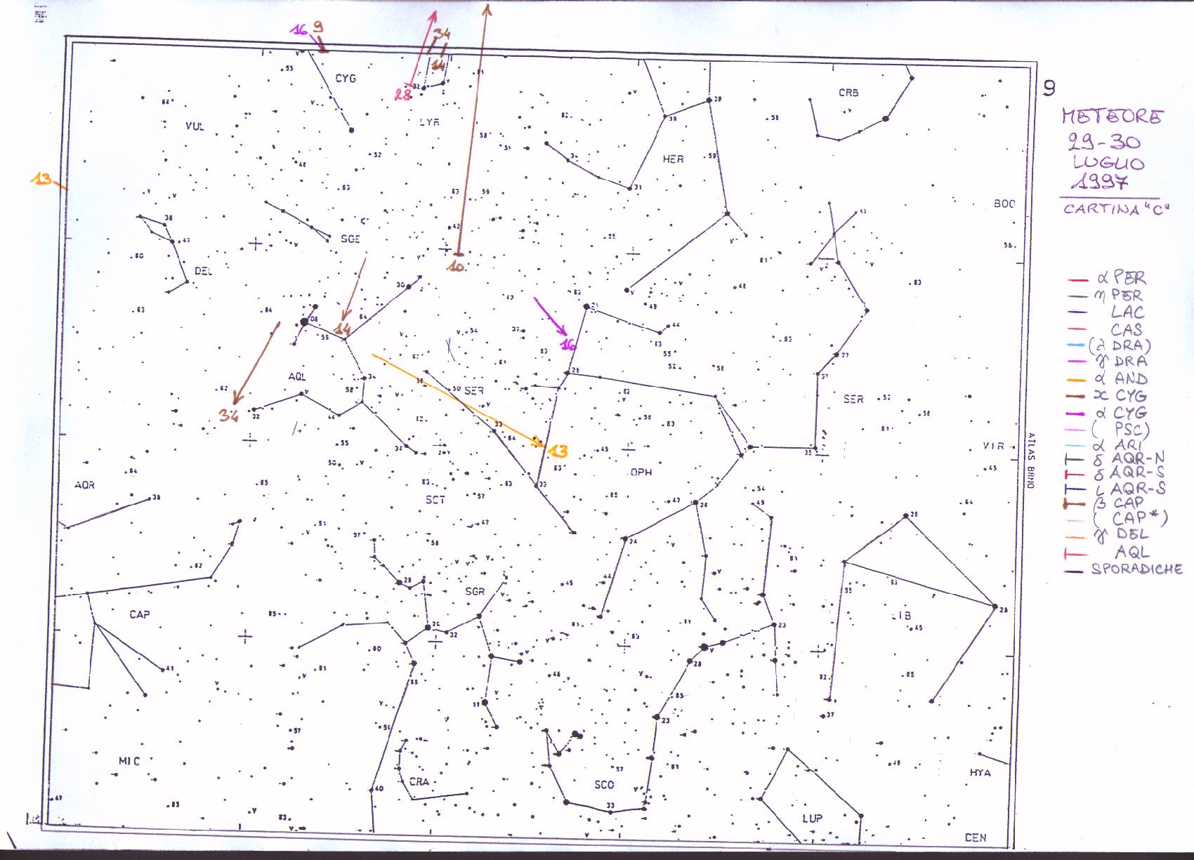 | 09 | 29.07.1997 | 22.42.17 | CAP * | 4 | VV | CYGNUS | 0.5 SEC.; EV. SPORADICA |