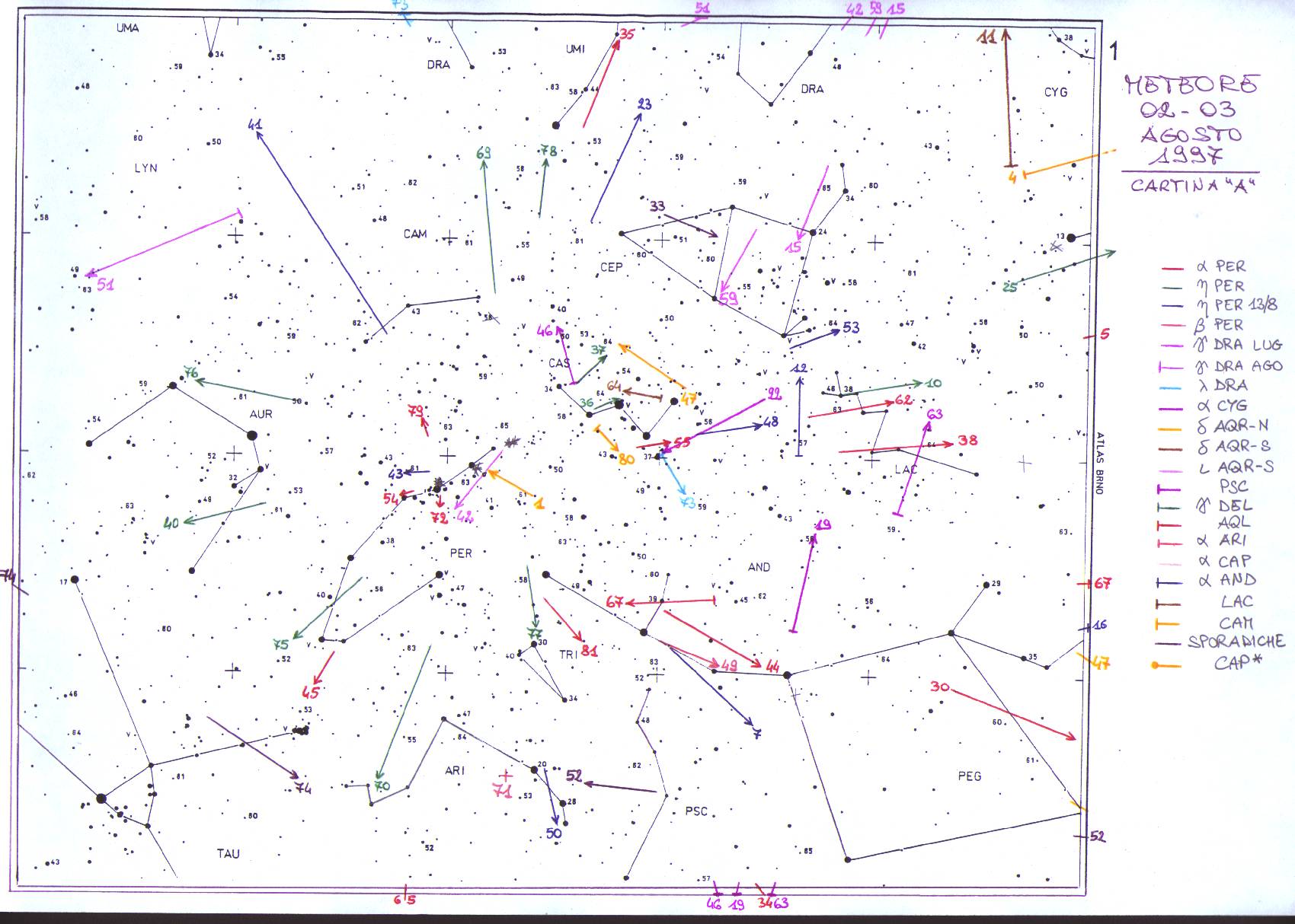 | 44 | 03.08.1997 | 01.00.30 | ALFA PER | 4.5 | V | ANDROMEDA | 1 SEC. |