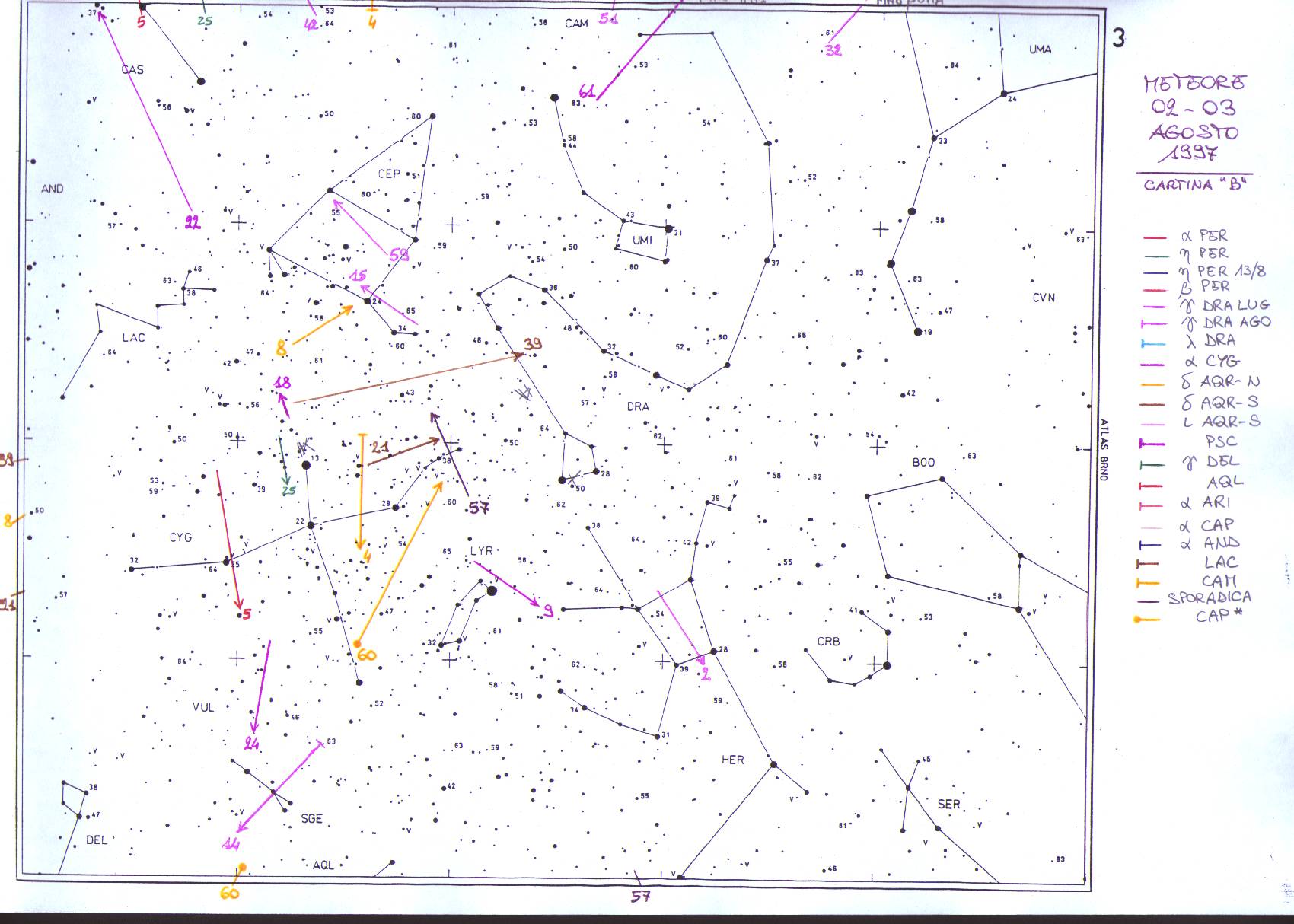 | 57 | 03.08.1997 | 01.44 | SPORADICA | 2 | V | CYGNUS | 1 SEC. |