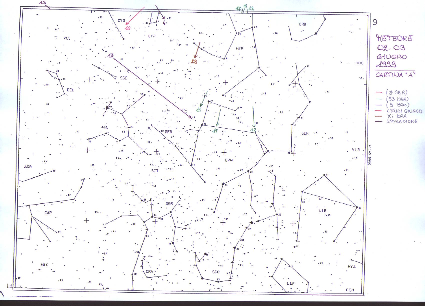 | 14 | 02.06.1999 | 21.27.30 ~ | LYR GIUGNO | 4 | V | LYRA - CYGNUS | 0.5 SEC. |